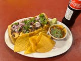 3 grilled flour tortillas filled with melted Oaxaca cheese, onions & cilantro. With your choice of protein. Chips and salsa on the side.