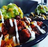 Nachos, jalapeno cheeses, pico de gallo, beans, jalapenos, sour cream, guac, and your choice of protein.